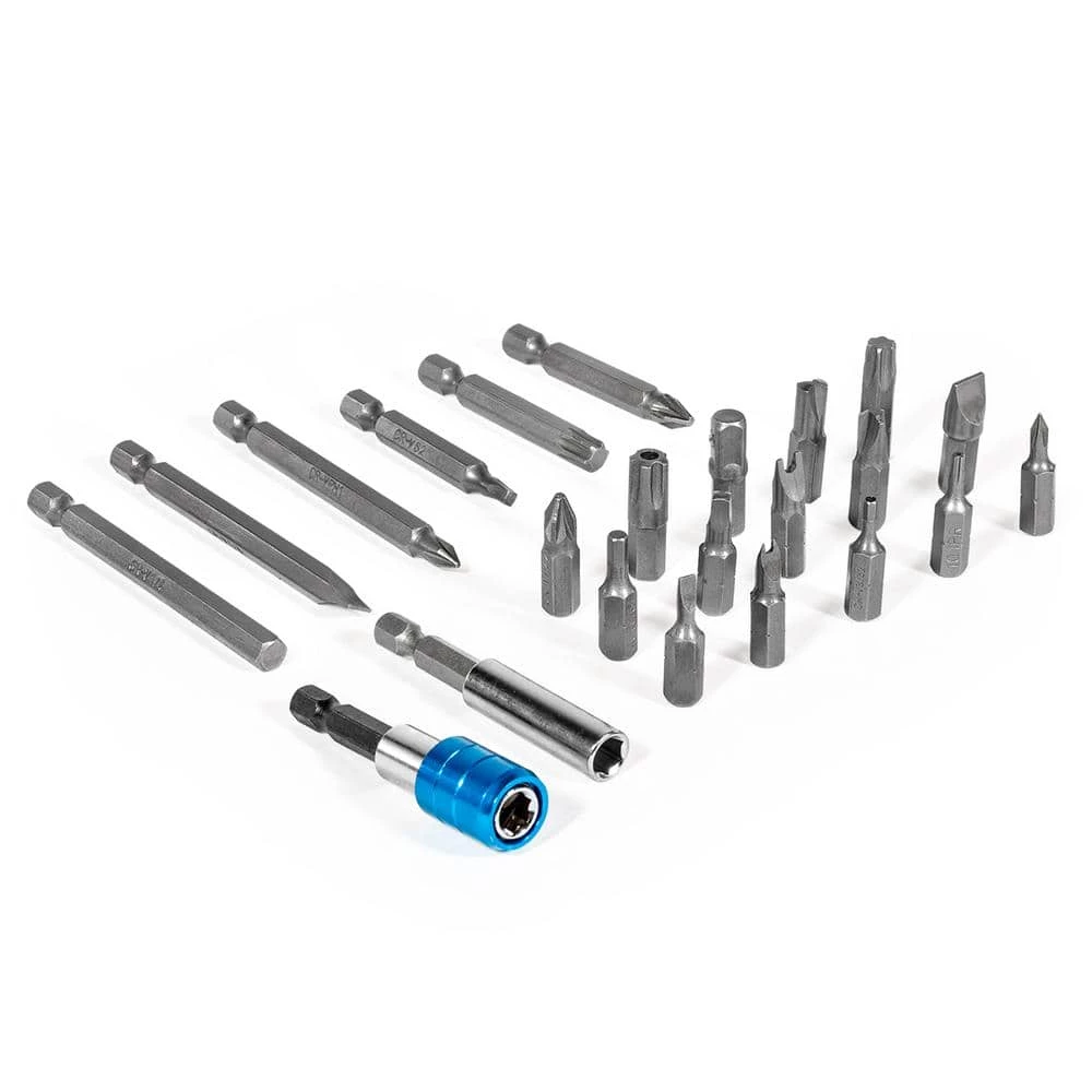 - 49-pieces – 25-security bits: 3 Torq: 6, 8, 10, 4 spanner: 4, 6, 8, 10 four tri wing: 1, 2, 3, 4, nine tamper 5 star: TX10, TX15, TX20, TX25, TX27, TX30, TX40, TX45, TX50, (14) Tamper TORX: T5H, T6H, T7H, T8H, T9H, T10H, T15H, T20H, T25H, T27H, T30H, T35H, T40H, T45H, 6 tamper hex: TX2, TX2.5, TX3, TX4, TX5, TX6, six tamper hex: 5/64 in., 3/32 in., 7/64 in., 1/8 in., 9/64 in., 5/32 in., three 25 mm clutch bits: 1, 2, 3