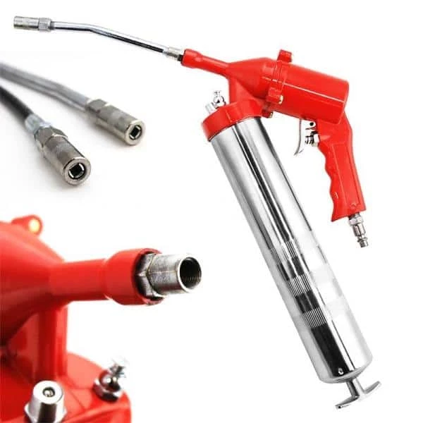 The heavy-duty multipurpose grease gun can be loaded with 14 oz. cartridges, bulk loaded, or loaded through a dispenser. The Pistol grip for better control. The grease gun is a convenient way to pack bearings and apply grease to friction points. Wide application ideal for Automotive and Trailers, Agriculture, Industrial, Marine and much more. 3-Way Grease Loading: Standard 14 oz. Cartridge; Bulk Suction Fill; Filler / Dispenser Pump. Continuous cycle provides easier operation for user, Non-slip rubber grip provides higher griping friction, working pressure is up to 6000 PSI. Non-Slip design with a unique knurling on barrel for enhanced grip. Canister is built with cold drawn steel tube provide the high durability, the low variance ID feature prevent grease leakage from happening in bulk application. O-Ring sealing high pressure piston design, prevent the grease from leaking from pump head.