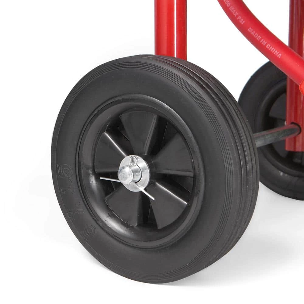 - Features 2 large pneumatic rubber wheels and thermoplastic handles for easy transportation and storage of equipment