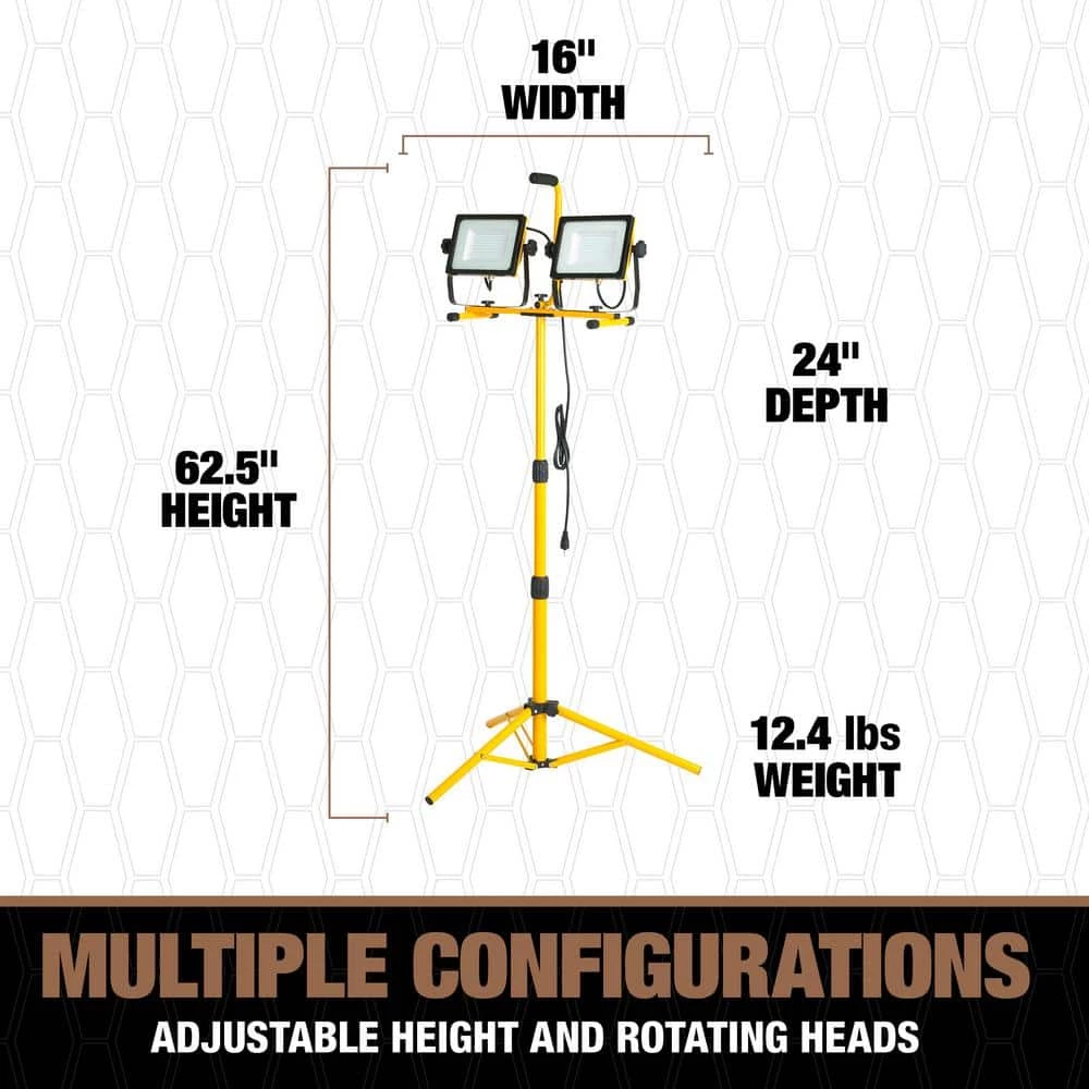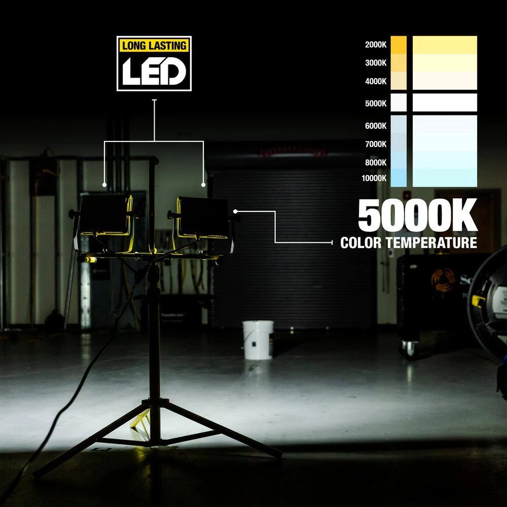 Southwire’s ratcheting LED lights include a smooth, rotating 360-degree head that points light in any direction. Not only can the 2 lights can be removed entirely from the stand, but the stand can be adjusted both in height and direction by 180 degrees while the tripod can collapse with its easy 2-step process for convenient storage and transportation. The LED lights both exert 5,000 Lumens of light for a total of 10,000 Lumens, exerting the ideal brightness for a variety of indoor and outdoor settings.