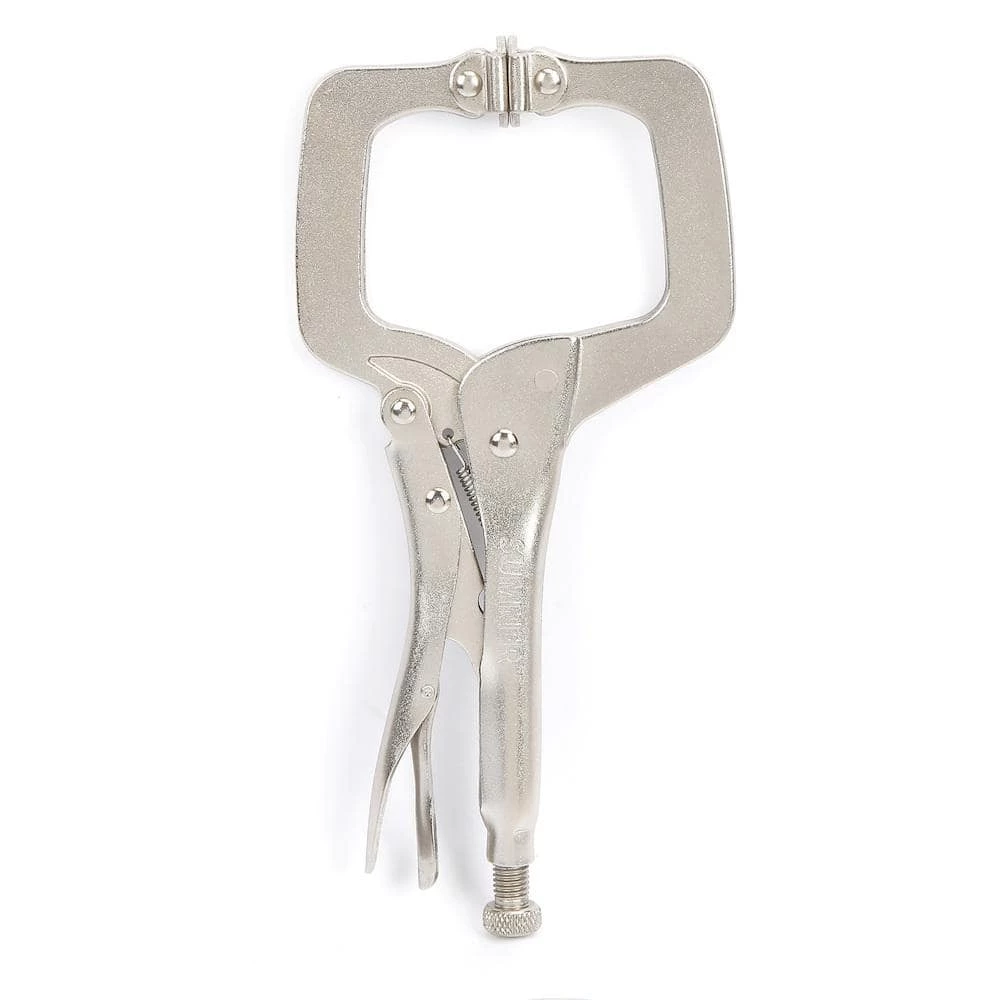 The 11 in. Locking Clamp with Swivel Pads is designed for adaptable use on the job. It features 4 different locking clamp sizes 6”, 9”, 11” and 18”. The strong, riveted connecting arms prevent its joint integrity from being compromised. Features swivel pads that provide a more stable gripping surface to hold your work securely. Additionally, the trigger release delivers a maximum locking force every time.