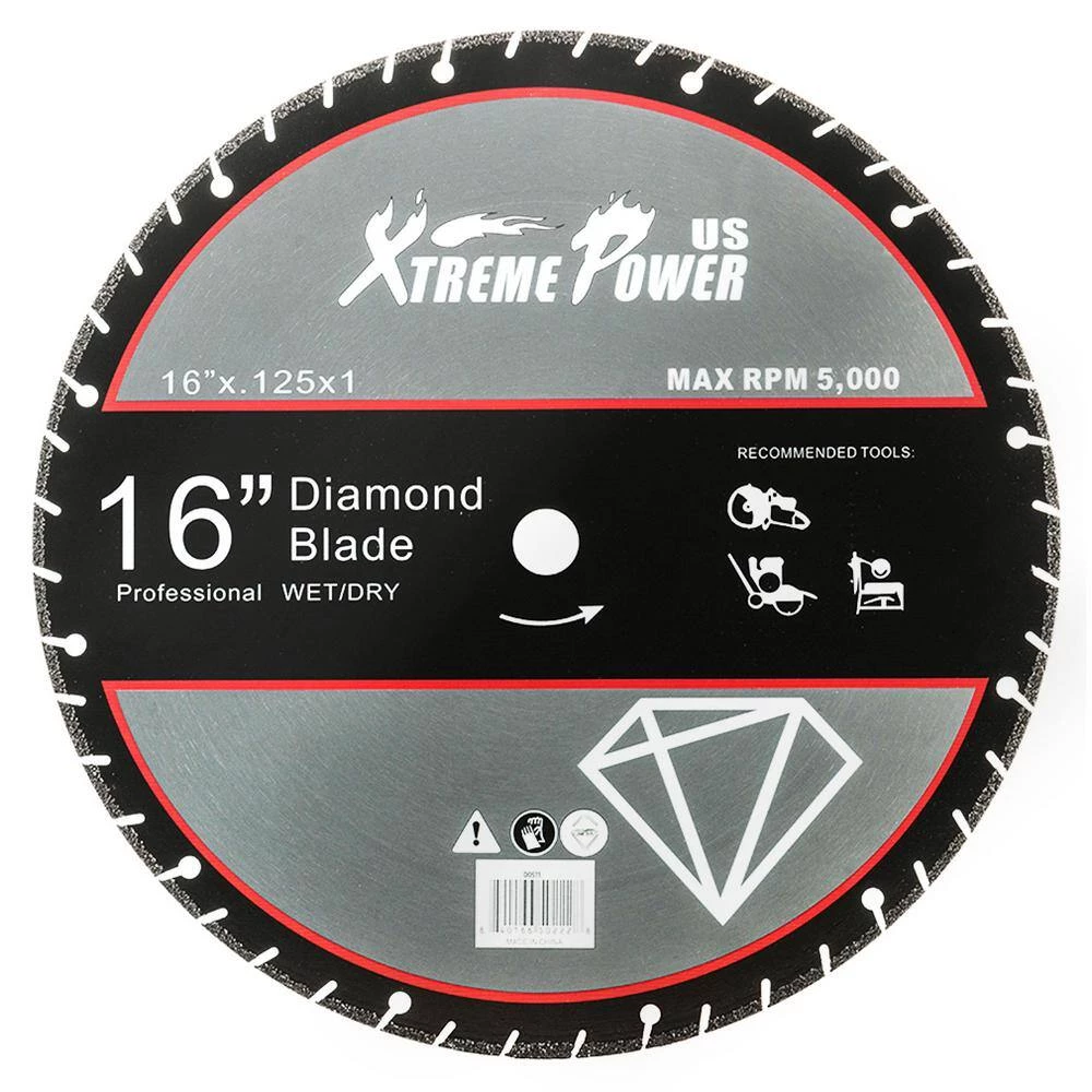XtremepowerUS 16 in. Diamond Cutoff Wheel is equipped with vacuum brazed technology for a longer life span. The vacuum technology also prevents the saw blade wheel from losing its diameter while in use. The Stark Diamond Cutoff Wheel is great for cutting ferrous metals, iron, steel, stainless steel, copper, rebar and other high tensile alloy or concrete.