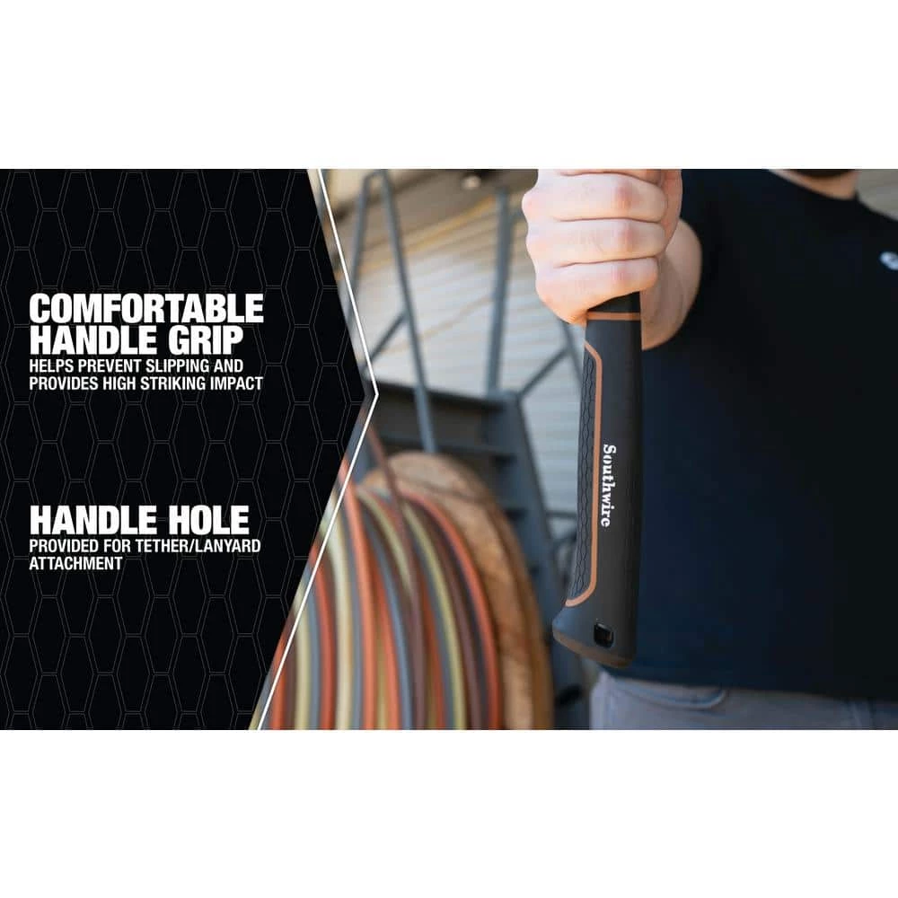 Southwire BMEH18 18 oz. Heavy-duty Electrician’s Hammer is equipped with the power you need to get the job done. Constructed from durable drop forged steel It is built to stand up to the rugged work environment. The extended neck and integrated Romex staple remover makes this the perfect electricians hammer. As an added bonus the high strength lightweight fiber glass, comfort grip handle and tether/lanyard hole makes your job easier and safer.