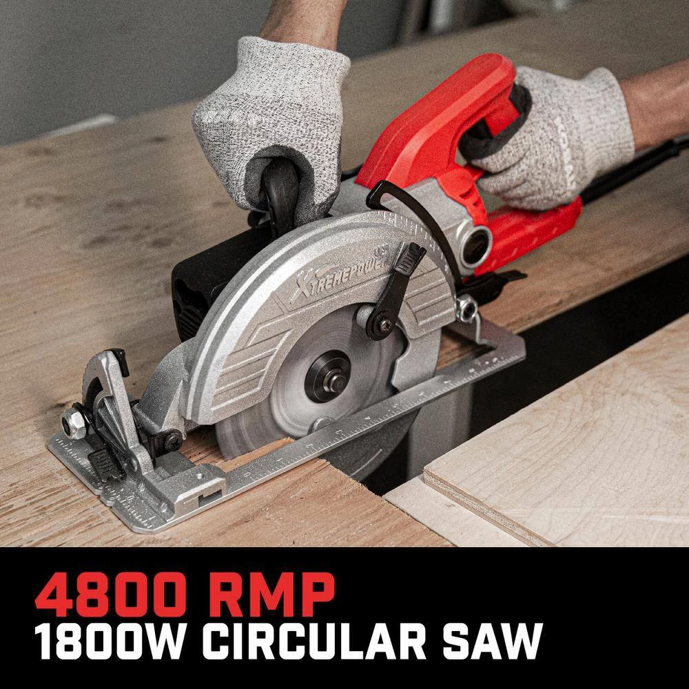 - 7-1/4 in. circular saw features highly durable industrial components and a powerful 1800-Watt industrial motor with a gearing system for maximum power output with seamlessly balances weight, power, durability, and ease of use for optimum cutting performance
