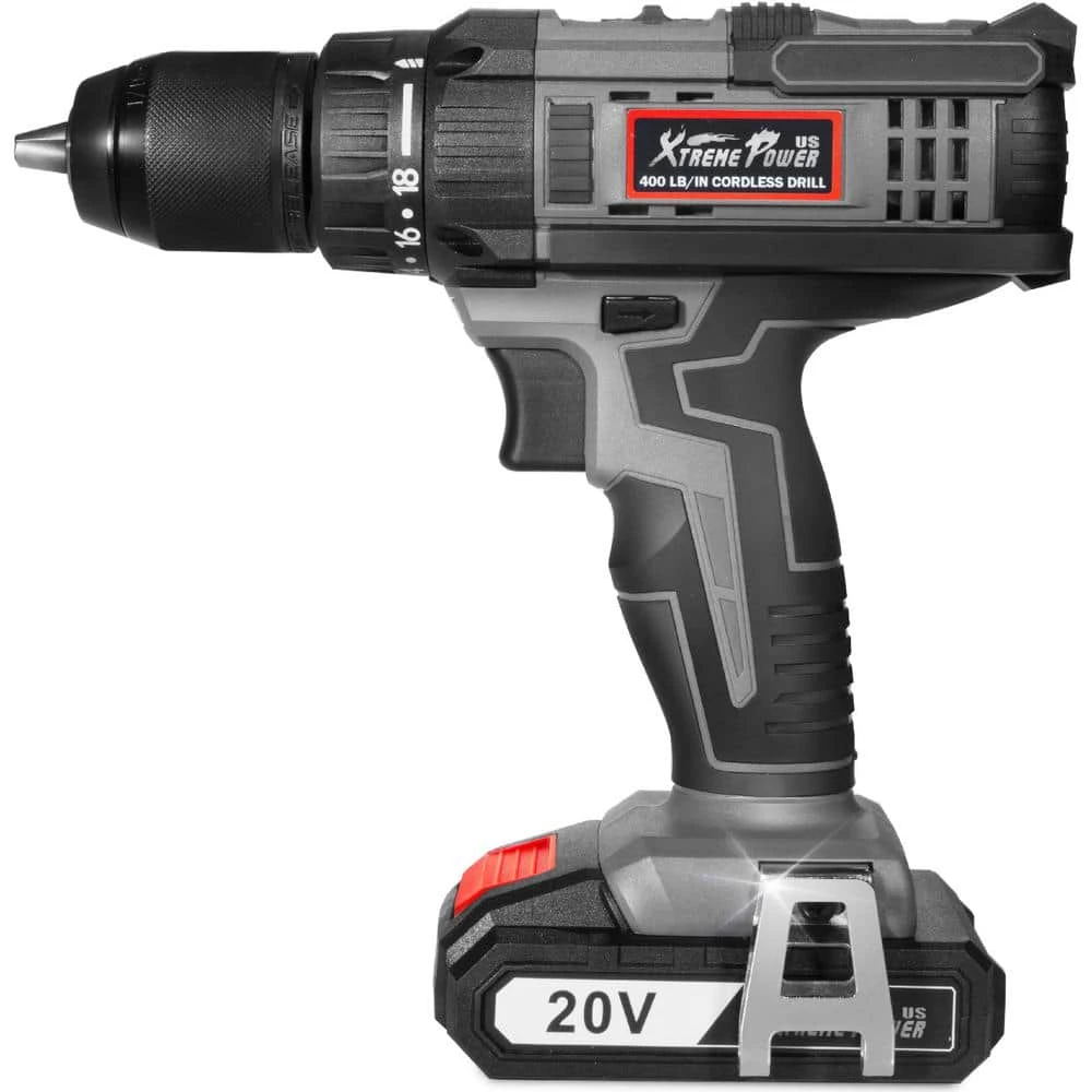 XtremepowerUS Compact Drill is light-weight and compact for working in tight spaces for long periods of time. High-speed transmission delivers variations speed variations allowing users to choose the level of performance needed for various applications. High performance 20-Volt motor optimizes drill’s efficiency with high-performance, more durable. 400 in. lbs. high torque fulfills a wide range of needs of various applications.