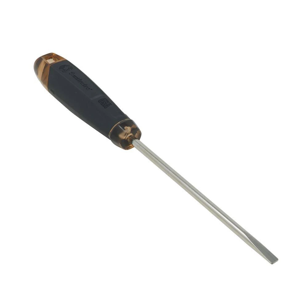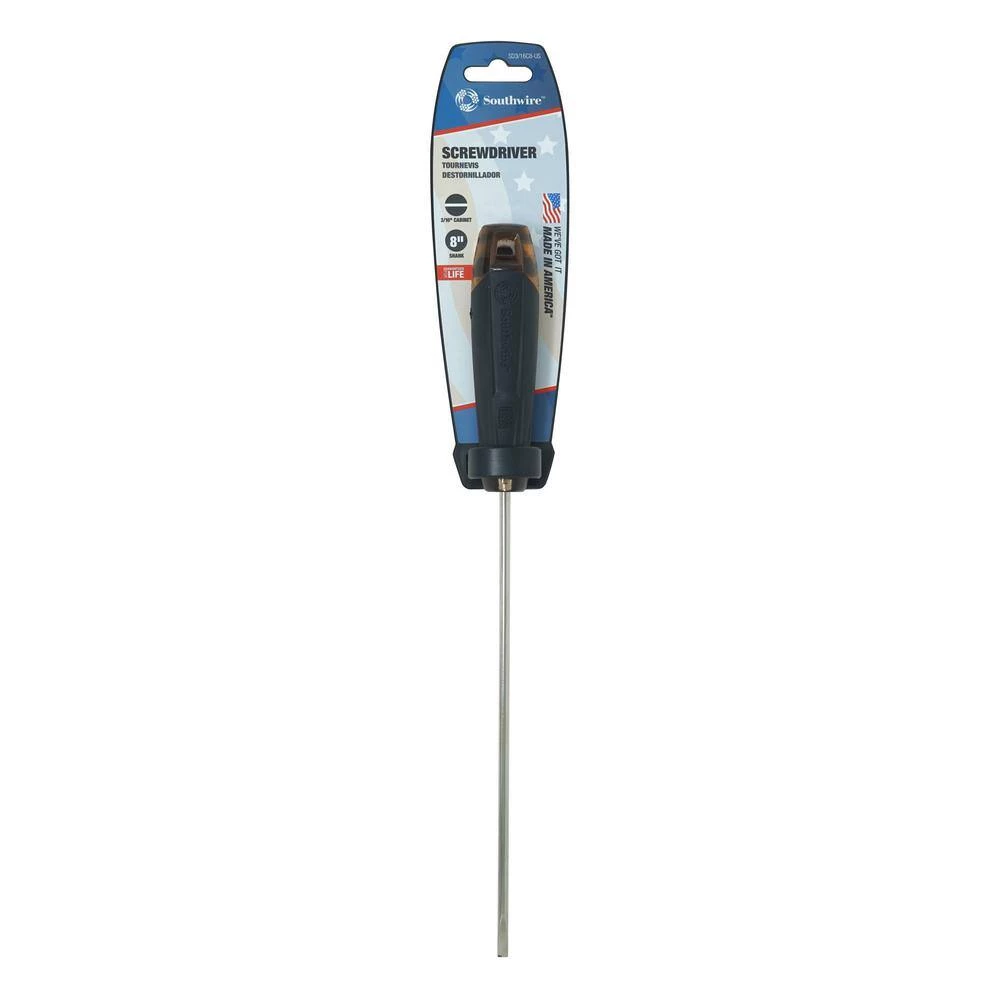 Southwire is proud to introduce our line of all Made in America drivers. The USA cabinet tip screwdriver has a 3/16 in. cabinet tip and 8 in. shank. The cushion grip handle allows for maximum torque and comfort. This driver has a 22% larger cushion grip handle that provides ultimate comfort and maximum torque as compared to previous generations. The corrosion-resistant shank ensures durability to withstand damaged, allowing for a longer life. This screwdriver comes with high quality, precision machined tips for an exact fit.