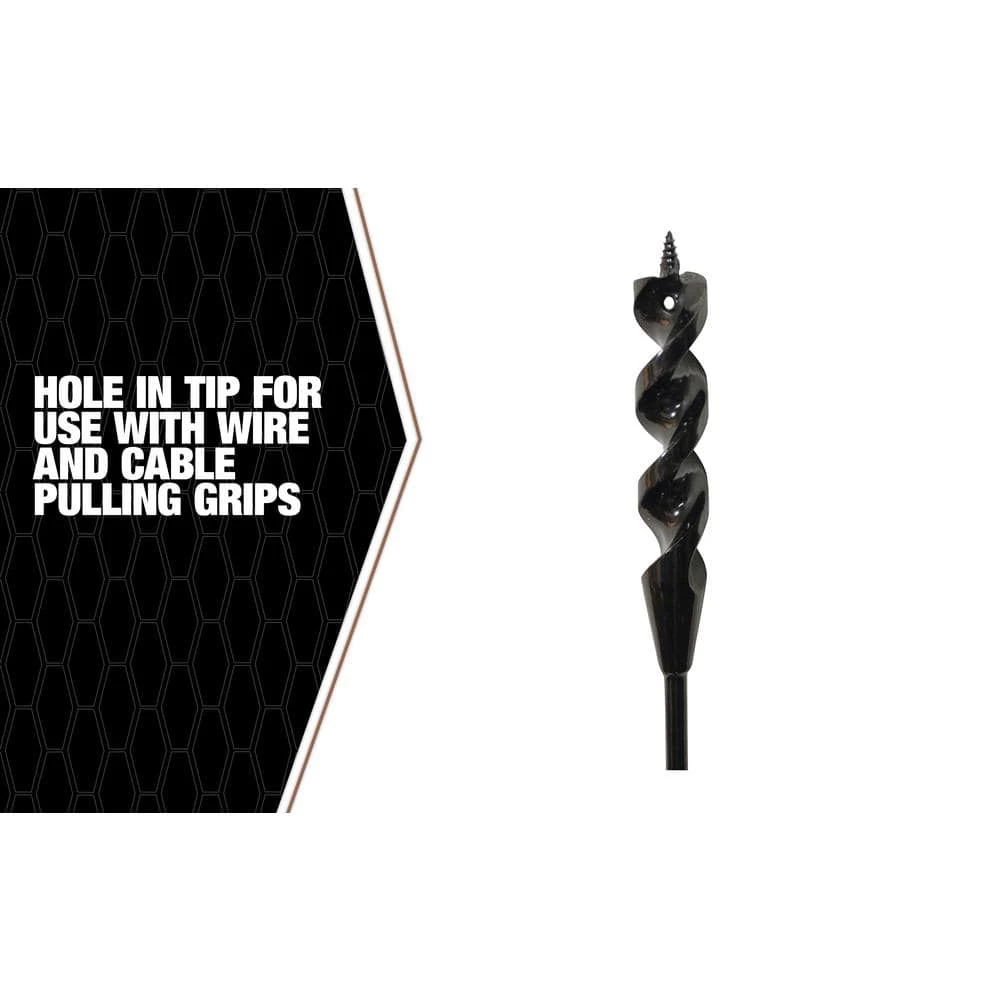 Quick clean drill holes every time with Southwire’s 3/4 in. 54 in. flex auger bits, the screw point tips easily drill clean holes through wood inside walls, Southwire is always built for durability. Built for reliability. Built for work.