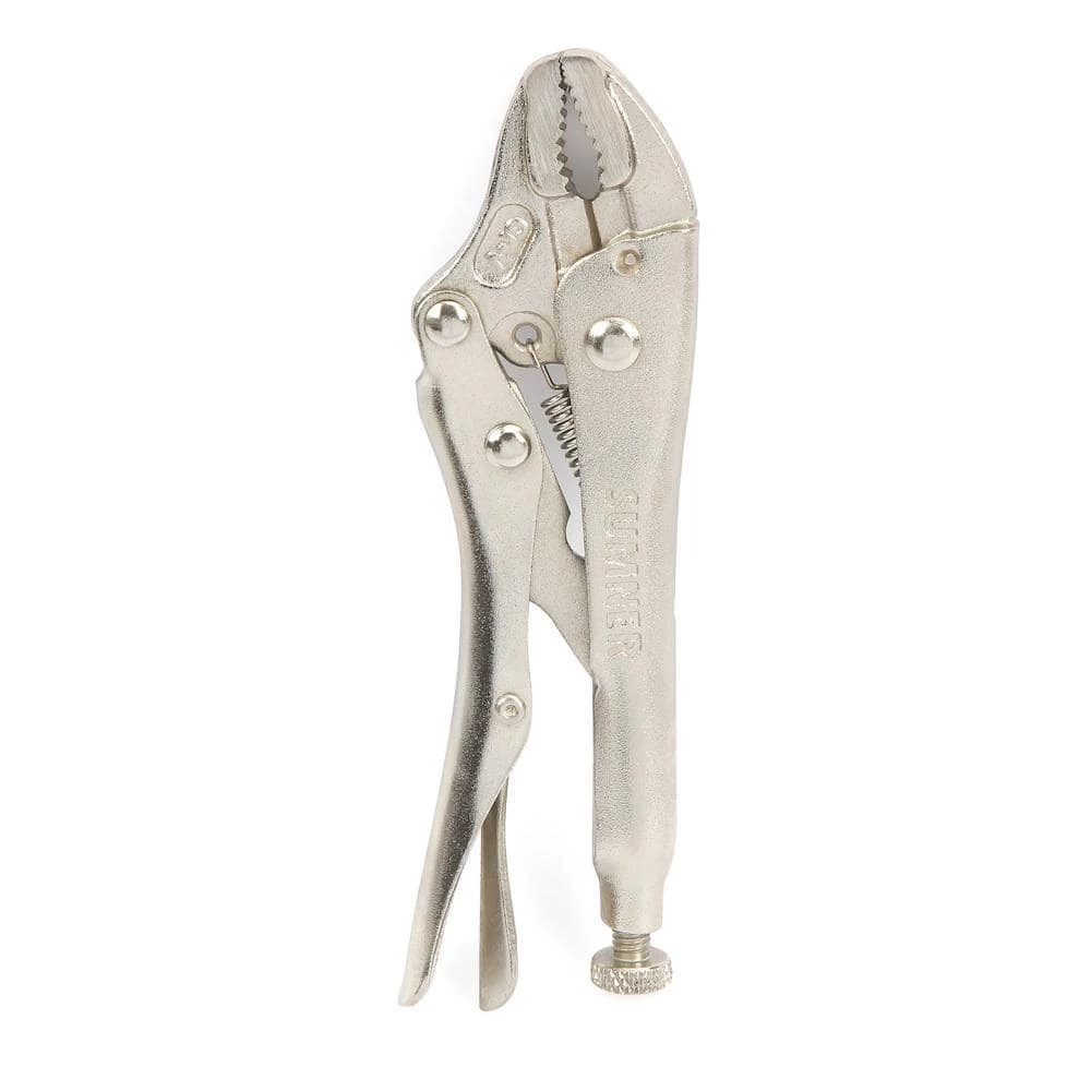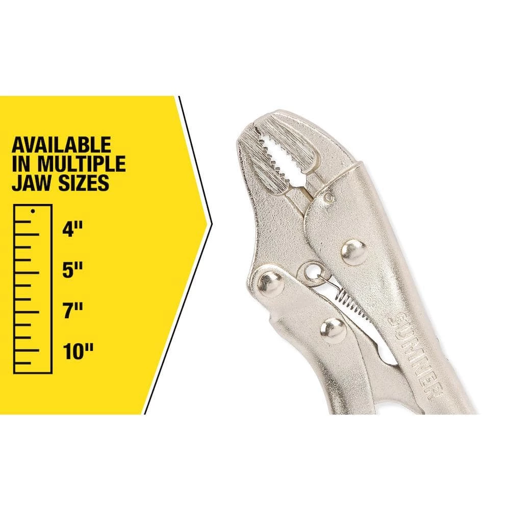 The 5 in. Curved Locking Pliers provide a perfect grip for a variety of curved surface shapes, including round pipes, square bolts, hex bolts and more. Conveniently designed with multiple jaw sizes at 4 in., 5 in., 7 in. and 10 in. measurements, they deliver adaptability at any turn. The durable design is made with high-grade, heat-treated CR-V alloy steel for long-lasting durability. The hardened teeth grip a variety of shapes from any angle and the trigger release provides maximum locking force. Additionally, these pliers include a wire cutter for your convenience.