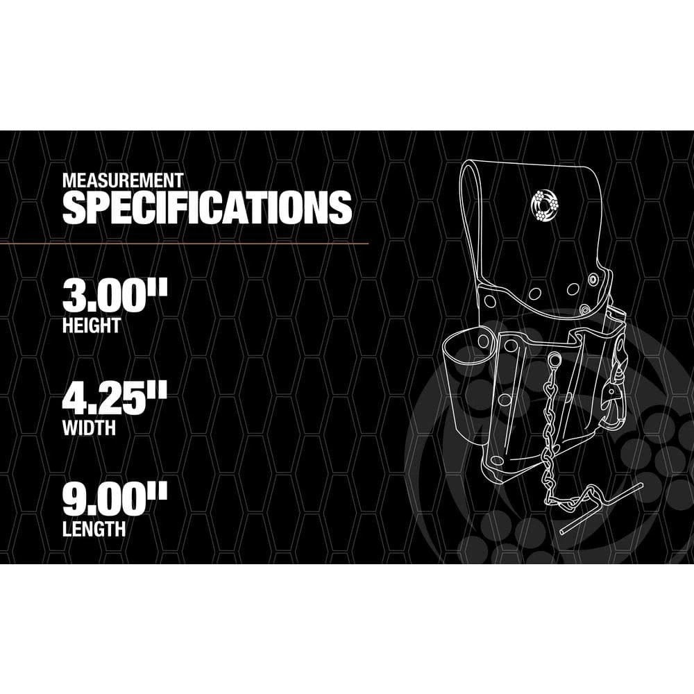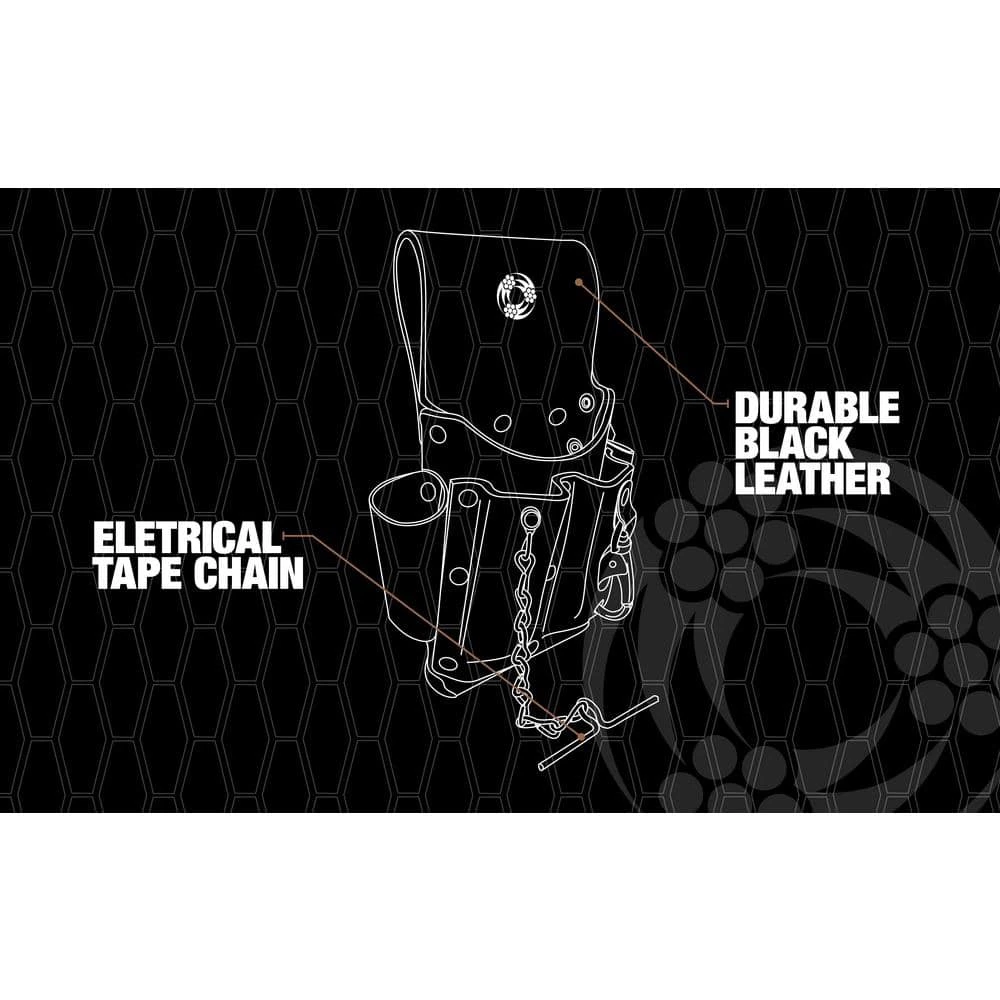 Southwire 5 Pocket Leather Tool Pouch is designed for easy storage and tool access for any electrician. The black leather pouch slides easily onto work belt and includes an electrical tape chain and metal tool clip for quick and easy access. Quality saddle leather is fade resistant and will not stain. Durable tapered compartments provide tool stability with washer rivets to enhance strength.