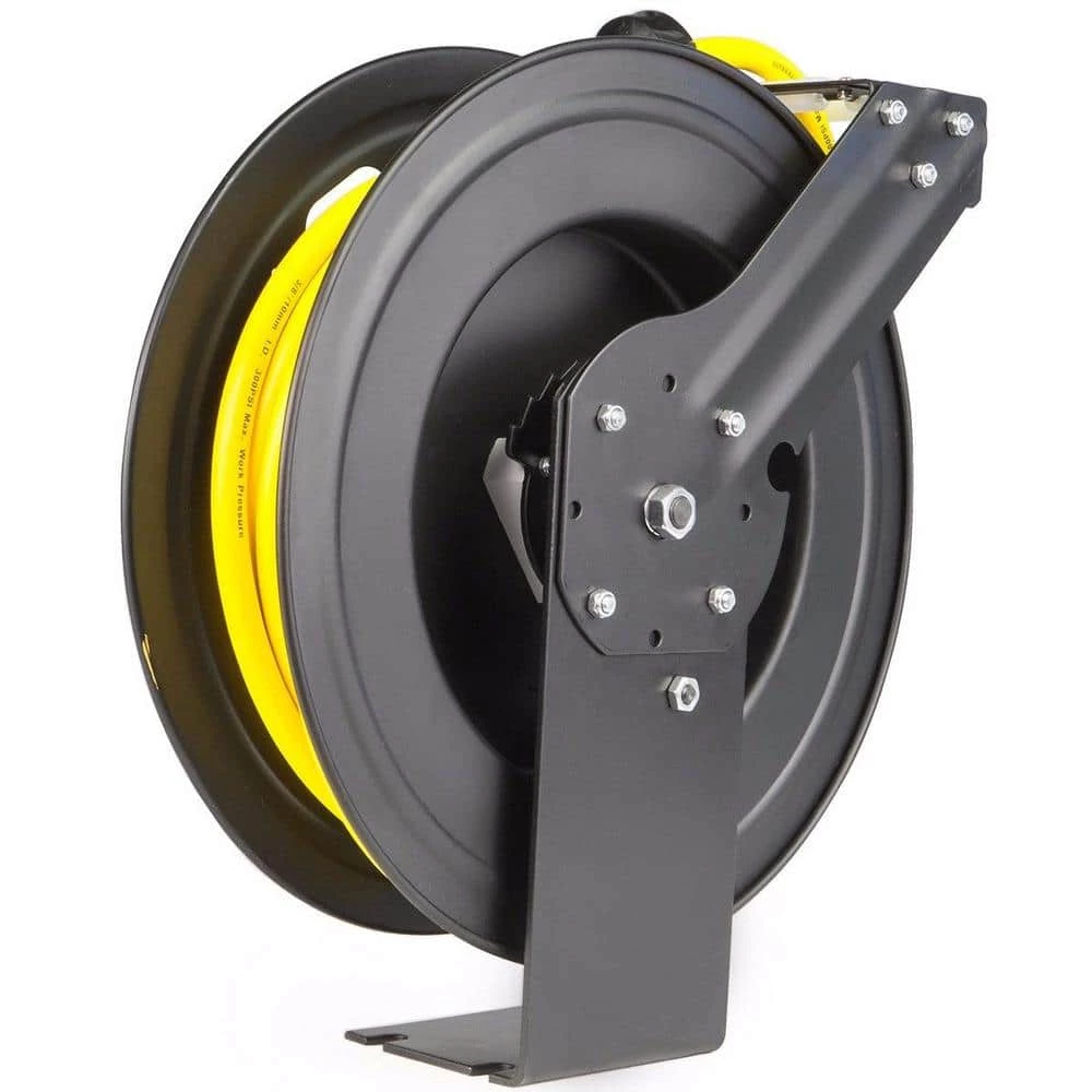 This 50 ft. x 1/2 in. features an auto retract design for retracting hose quickly and easily which is convenient and time saving. The snag-free roller system provides smooth operation. Our auto rewind air hose reel is made of industrial grade steel construction, solid reel and superior rubber hose ensures long-term durability.