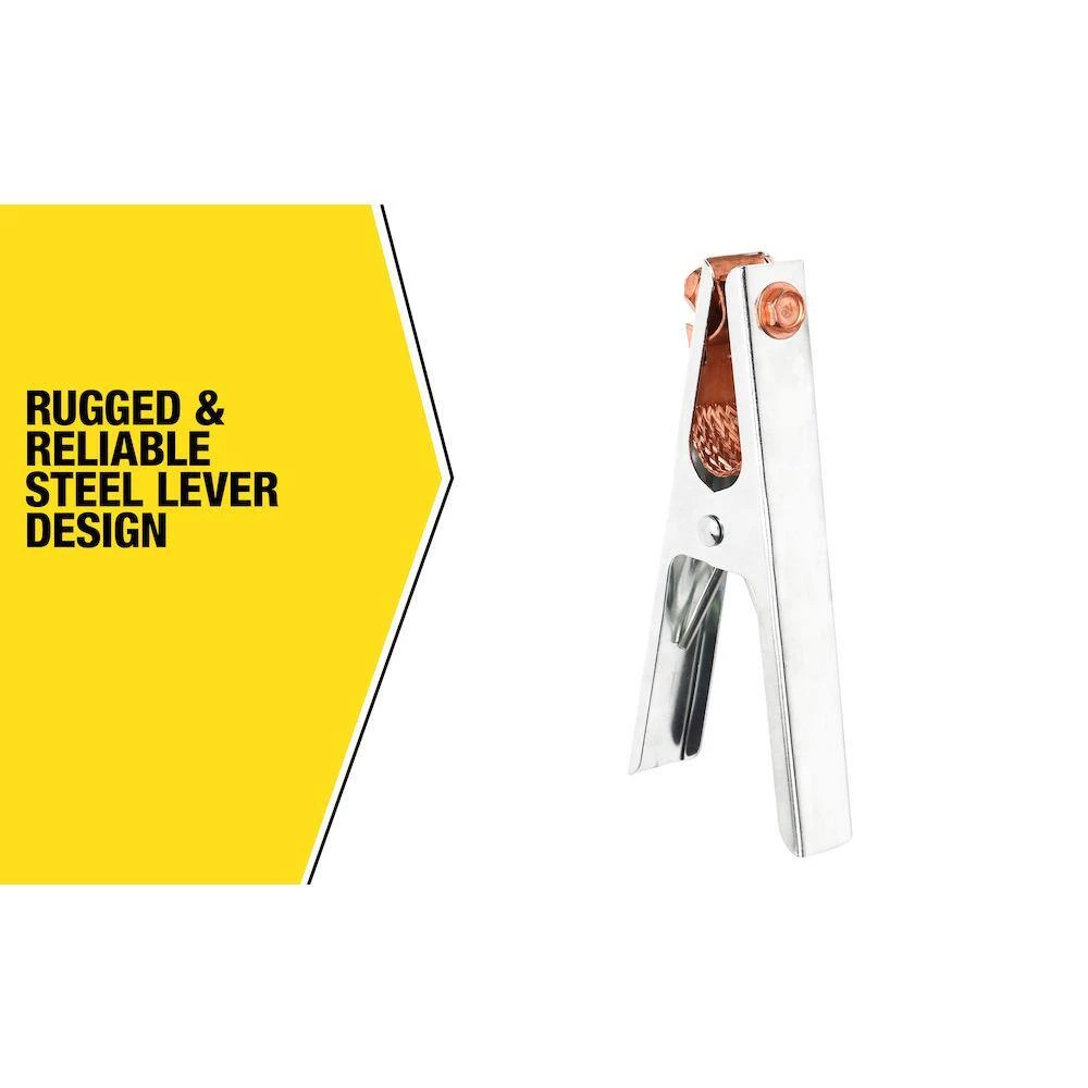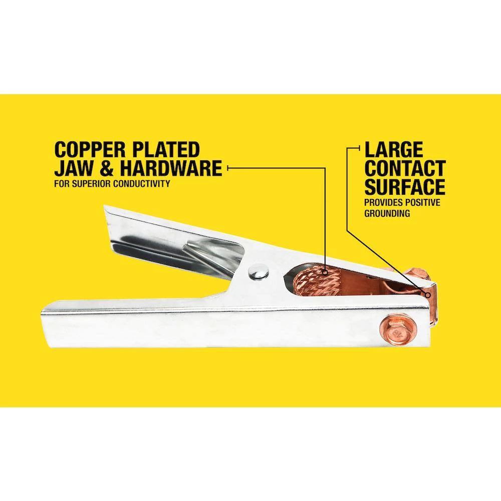 The Steel Ground Clamp is designed with a rugged and reliable steel lever for high-level performance on the job. It features a heavy-duty insulated spring and has a 500 AMP capacity to meet your needs. The copper-plated jaw and hardware deliver superior conductivity. Additionally, its large contact surface makes for positive grounding every time.