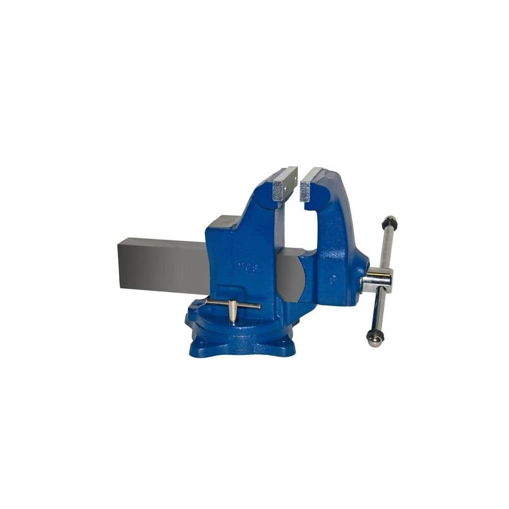 These heavy-duty vises meet Federal Specifications GGG-V-410, TYPE VI, CLASS 2. Each vise casting is constructed in 65,000 psi tensile ductile iron. The large pounding anvil surface and deep throat allow for extra working room. The interlocking swivel base with 360 degree motion is equipped with 2 lockdowns. A continuous rolled thread on main screw features a no pinch main screw handle. The serrated jaws are replaceable hardened steel.