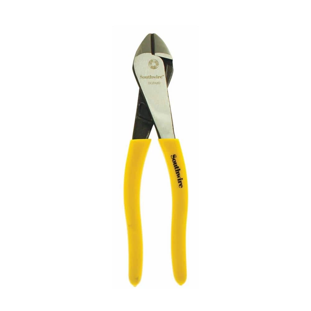 Made from drop forged steel, these 8 in. angled head diagonal cutting pliers come with plastic dipped handle. The high-leverage, hot-riveted pivot joint ensures smooth action and no handle wobble. The 14° angled head helps reach hard to reach and confined space areas.