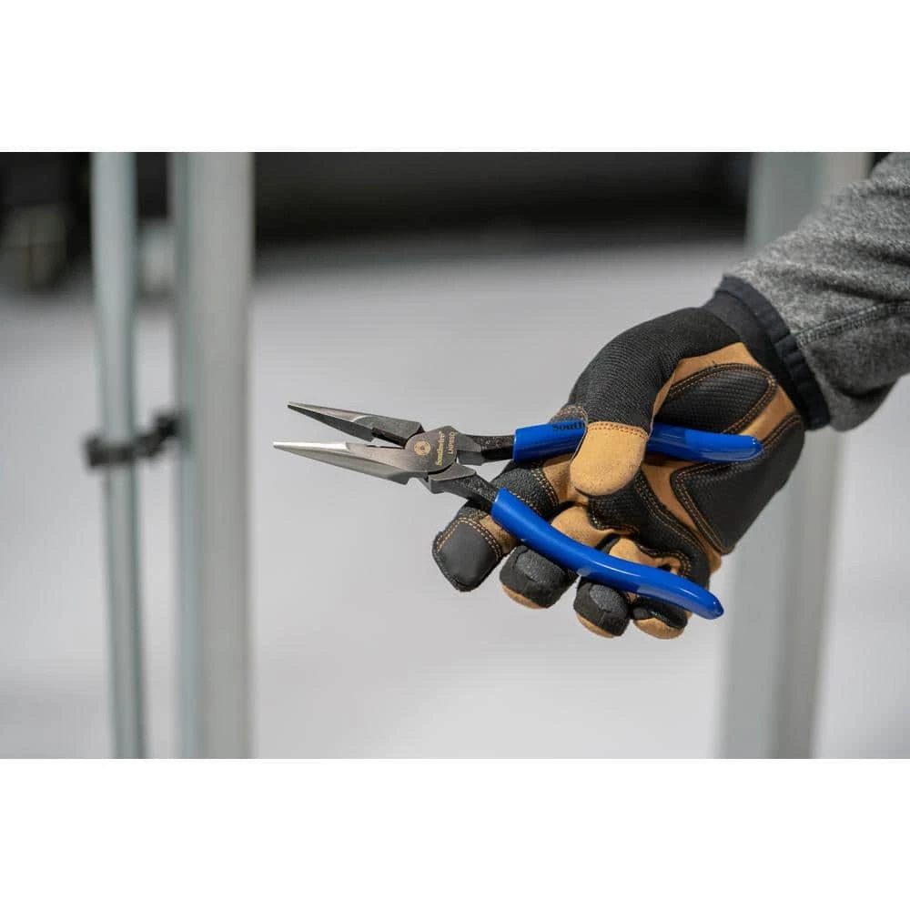 These durable, high-performing long nose pliers are built from forged steel and have a plastic dipped handle. Designed to reach tight spaces. The hi-leverage, hot-riveted joint is guaranteed to provide long-lasting durability and performance.