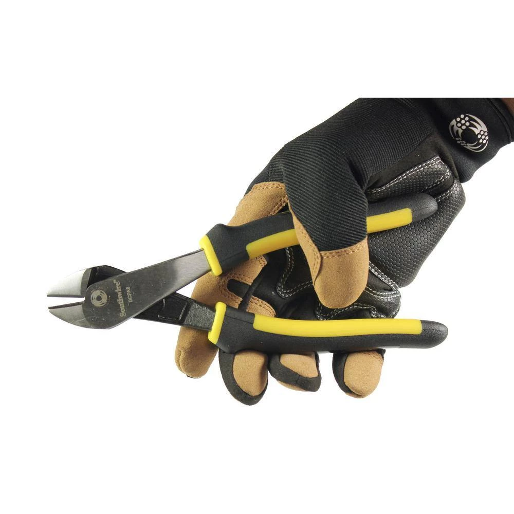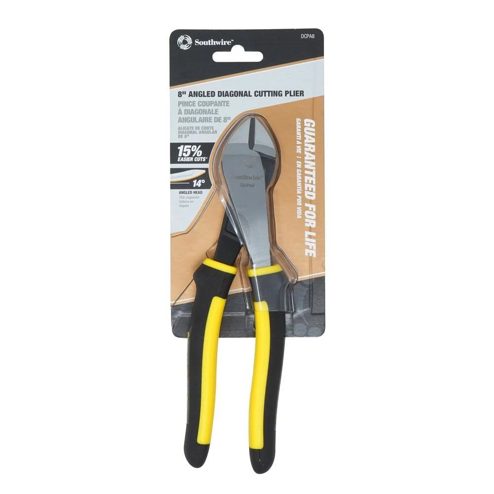 Made from drop forged steel, these 8 in. angled head diagonal cutting pliers come with a dual material double molded grip. The high-leverage, hot-riveted pivot joint ensures smooth action and no handle wobble. The 14° angled head helps reach hard to reach and confined space areas.