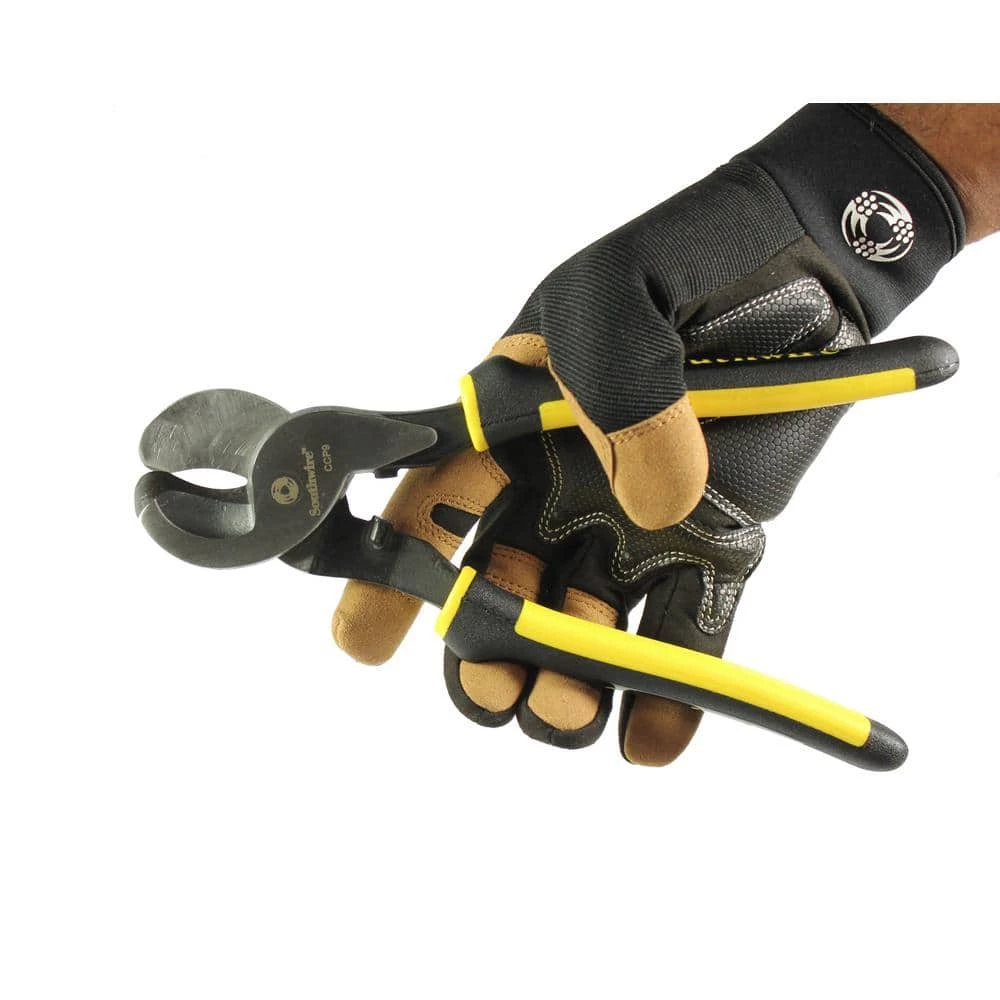 With a high-leverage, hot-riveted pivot joint. These cable cutters provide excellent 1-handed cutting. Designed to cut up to 2/0 copper and 4/0 AWG aluminum cables.