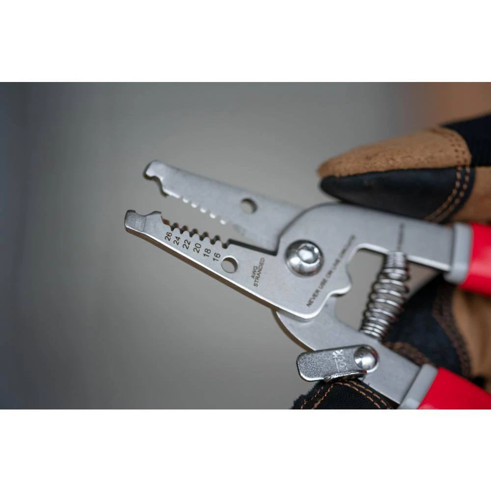 The Southwire S1626STR compact stripper is an essential tool for your wire stripping needs. Specially designed with stainless steel cutting blade, this stripper is a quick and effective tool for stripping 16-26 AWG stranded wire. This item is not designed for cutting bolts or steel cable. It is spring loaded for self operating action.