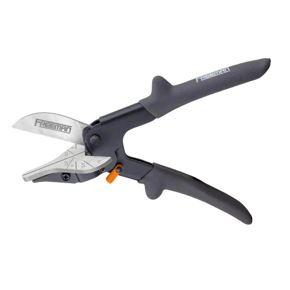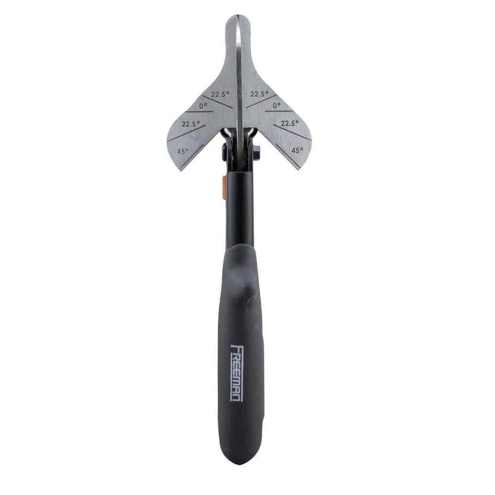 The Freeman PMPTC Multi-Purpose Trim Cutter is ideal for making fast and easy cuts through quarter round trim, PVC and wood. Use it for applications such as putting down tacking strips or installing tile trim. This rugged and lightweight hand tool has a convenient built-in miter guide for the precise cutting of zero, 22.5° and 45° angles. The durable cutting blade is replaceable to extend the life of this versatile trim cutter and can also be removed to sharpen. The non-slip handle has a rubber grip to increase control and accuracy when making cuts. Spring-loaded for ease of use, the handle locks for safety and protects the cutting blade when not in operation. The Multi-Purpose Trim Cutter is a great tool for DIYers taking on home improvement and repair projects as well as construction contractors at the job site and will allow you to complete finish trim work projects quickly and with professional results.
