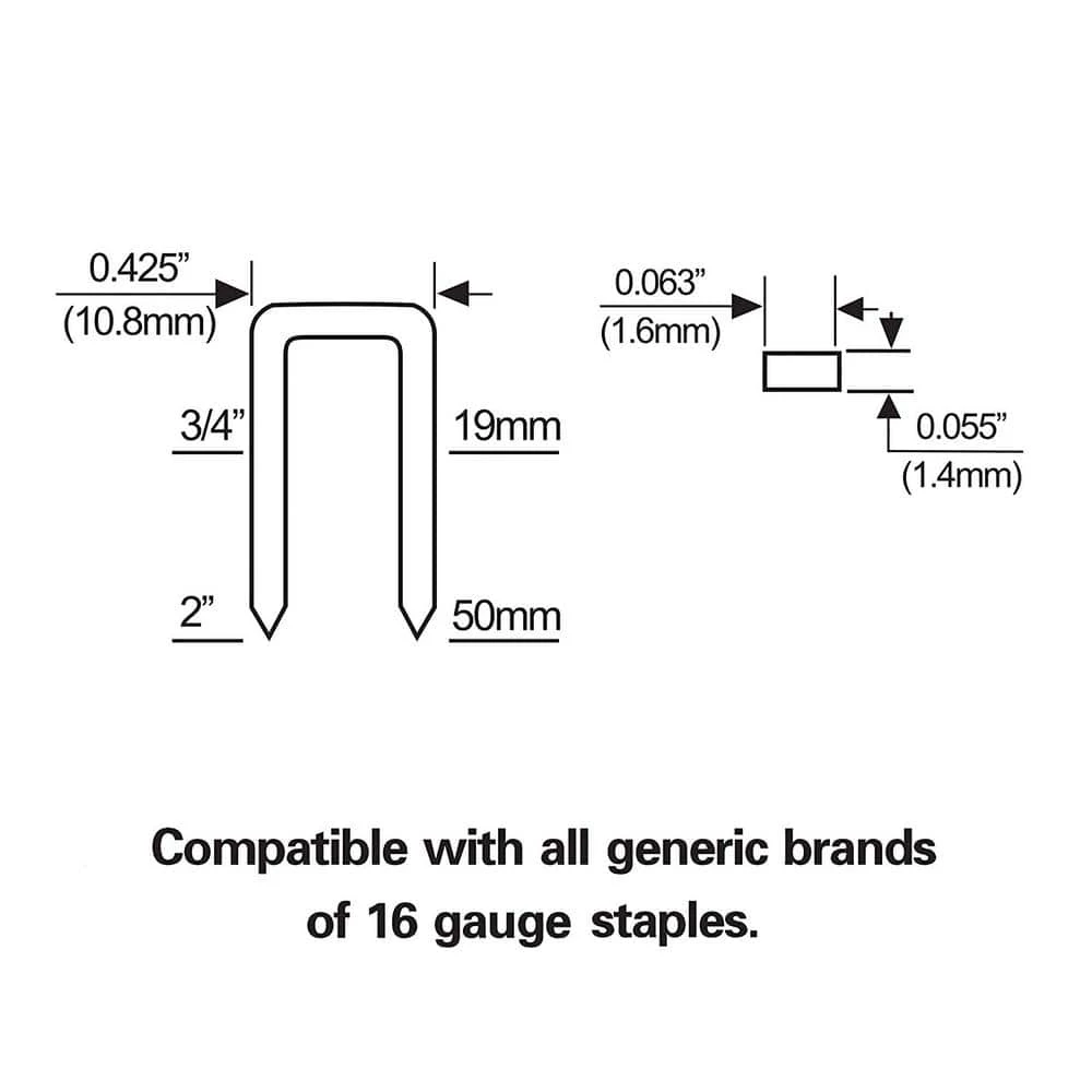 - Compatible with 16-gauge glue collated 7/16 in. medium crown staples from 3/4 in. to 2 in. L