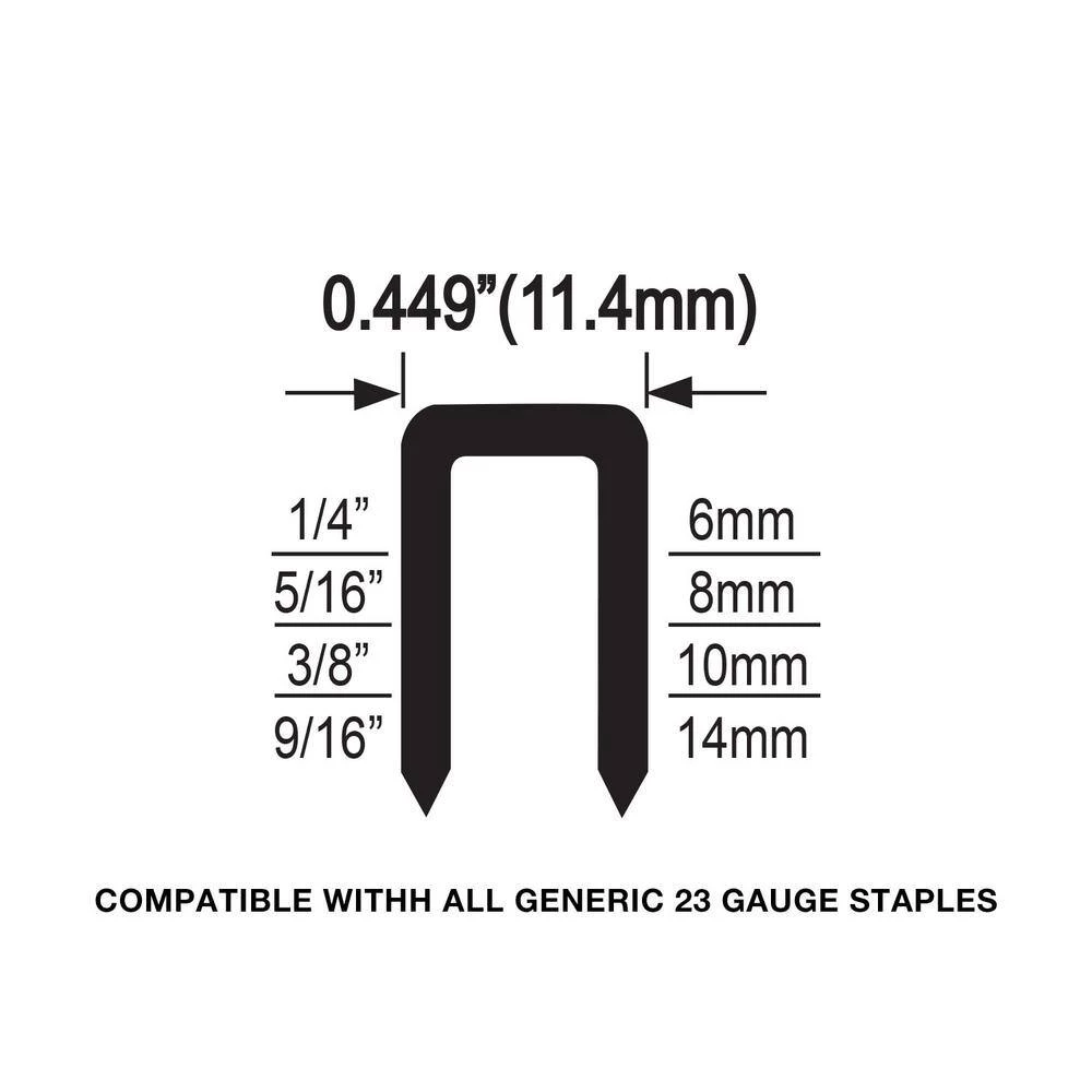 - Compatible staples: arrow JT21 staples 1/4 in. x 5/16 in. x 3/8 in. and 9/16 in. L