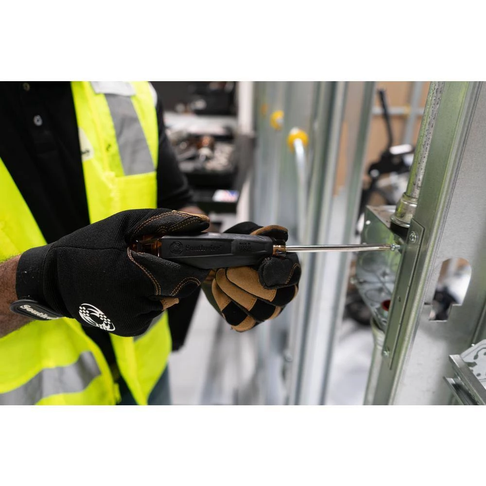 The USA Philips head screwdriver has a #2 Philips head with 4 in. shank. The cushion grip handle allows for maximum torque and comfort. This driver has a 22% larger cushion grip handle that provides ultimate comfort and maximum torque as compared to previous generations. The corrosion resistant shank ensures durability to with stand damaged, allowing for a longer life. This screwdriver comes with high quality, precision machined tips for an exact fit. A tether hole is provided for tether/lanyard attachment for added convenience.